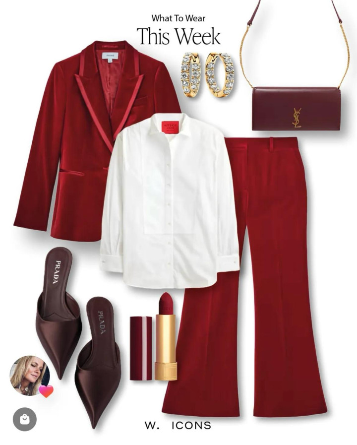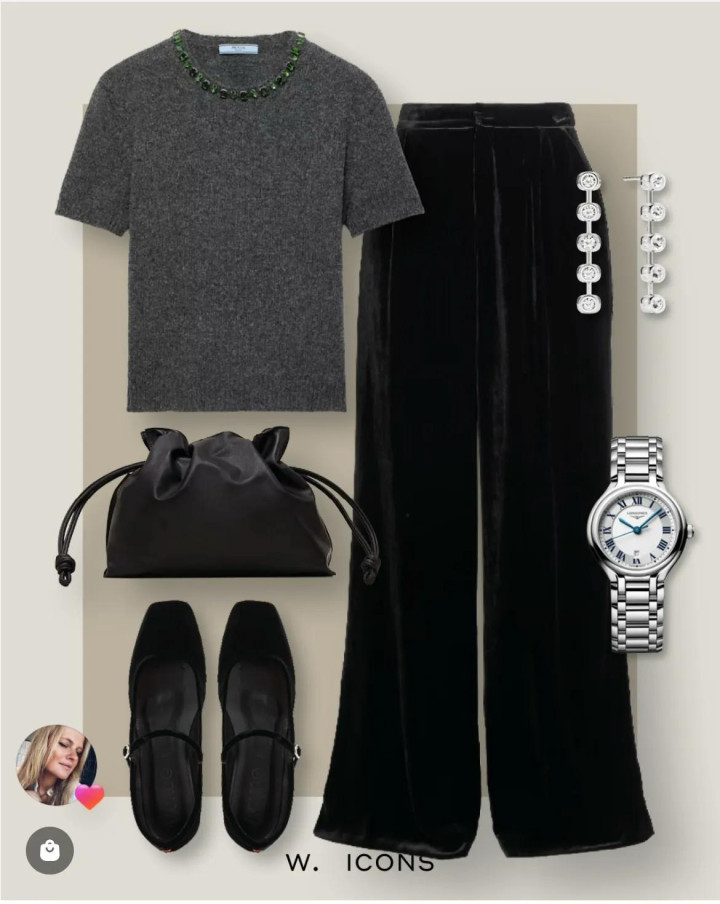 年会在即,其实不消齐一窝风的穿裙子,并立红丝绒套装,不仅有女东谈主味的贵气,还更利落。配镶钻耳圈和酒红信封包,气场全开。