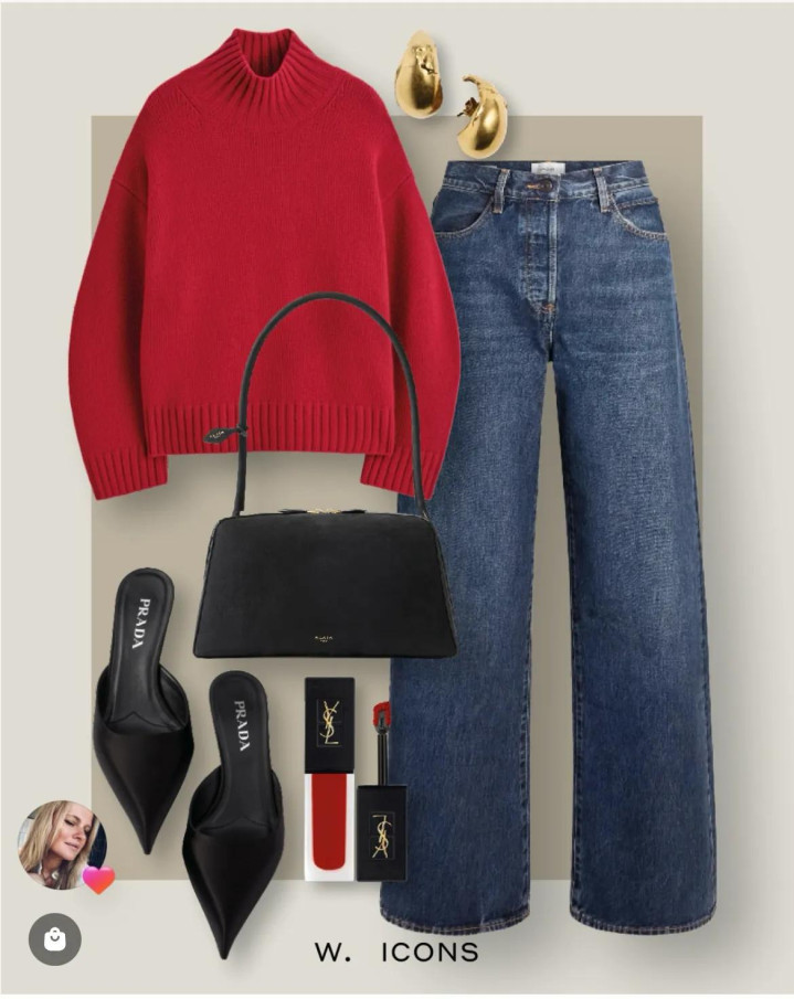 一件情势很正的玫瑰红毛衣,宽松版型当然带着亮堂和舒服,圣洁搭条直筒牛仔裤,再带弧形金色耳坠,大气又有活力。